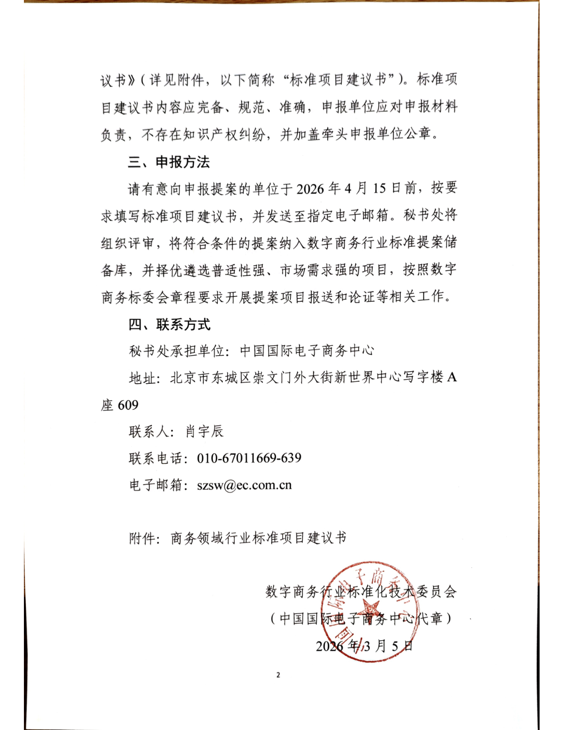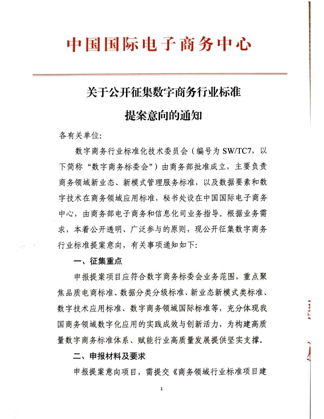 关于公开征集数字商务行业标准提案意向的通知